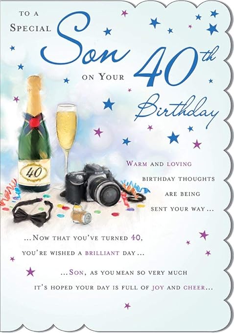 Valentine Card Design Birthday Card Happy 40th Birthday Son from wishesmessages.com Greetings and happy birthday wishes for a 40th birthday a 40 th birthday is like standing on a precipice. My son got me a sympathy card for my 40th birthday funny. We've explained it can be ok to send funny birthday messages to those turning 40. If your still stuck for what to write in their card, check out my page 100+ of the best happy birthday wishes and happy birthday quotes collections. It's not even the top of the hill. Son, as you celebrate your special day today, know that not even the strength of the combination of president trump's obsession with russia and money can compare to the strength of my love for you! You're still physically and mentally young. Try one of these upbeat, more positive quotes: